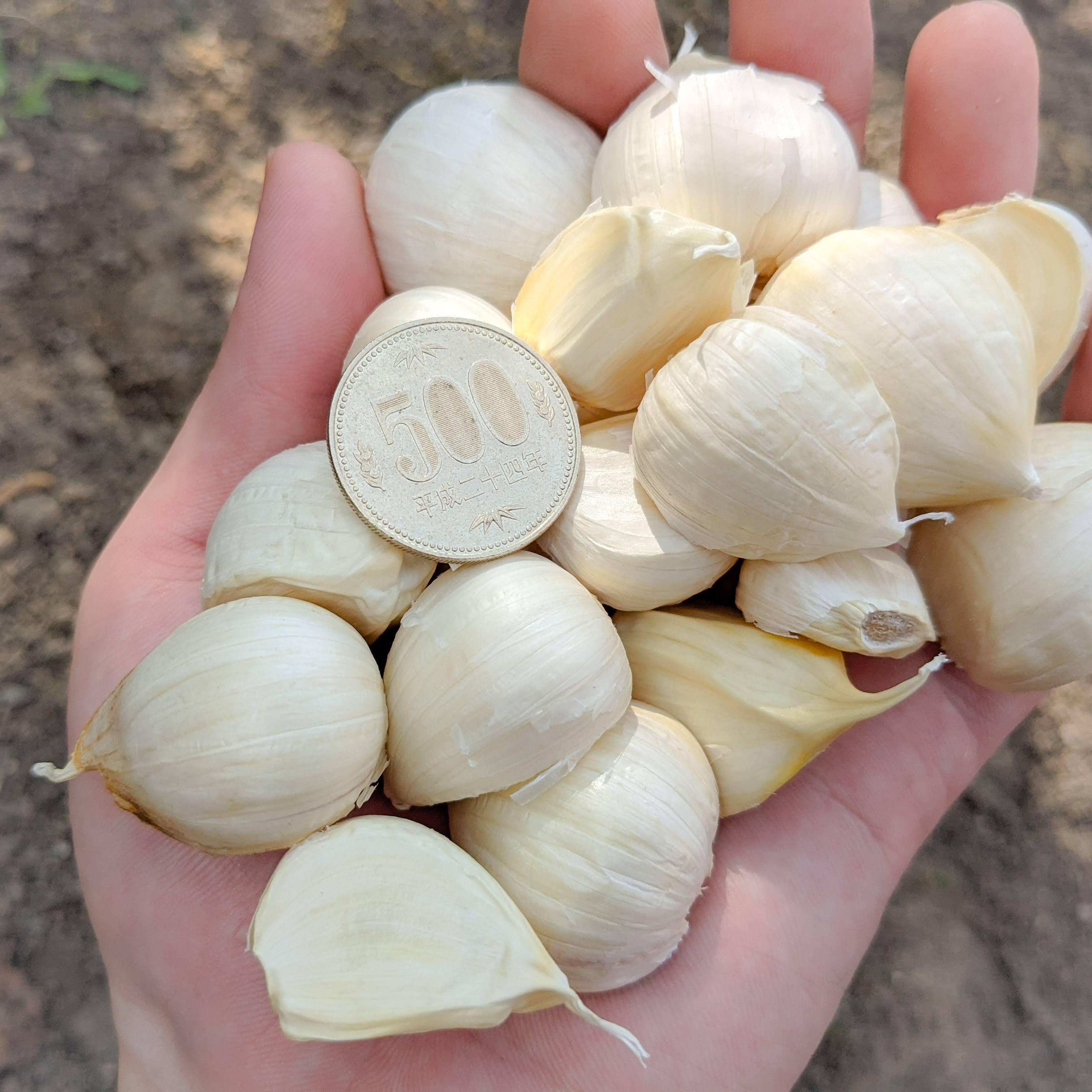 カキ殻や堆肥などの有機肥料を使用し、青森県の大地で育てあげた乾燥済みのにんにくです。